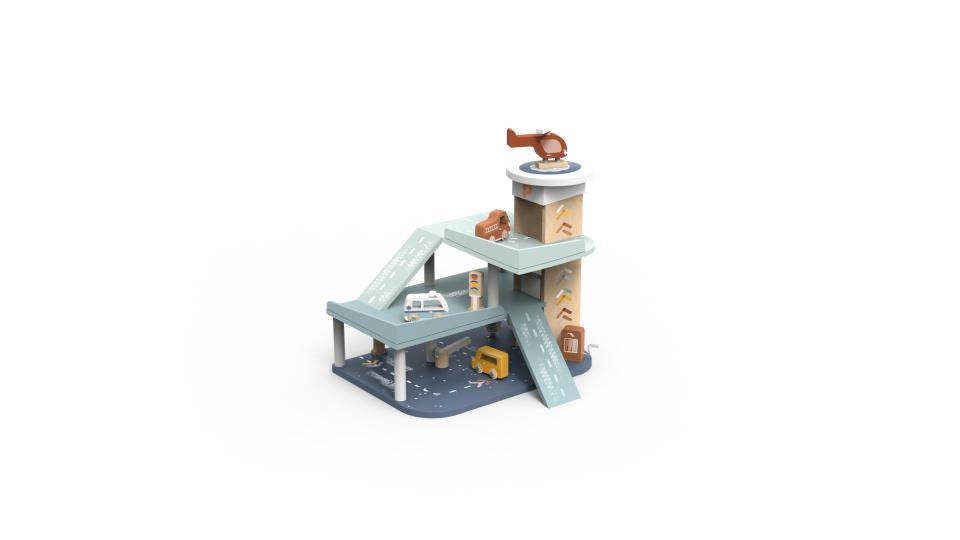 מוסך צבעוני הכולל תחנת דל,מעלית, מסלול ירידה, מסוק, מכונית ועוד-