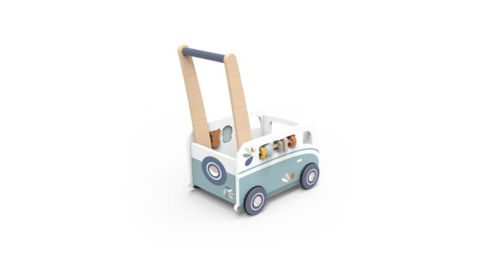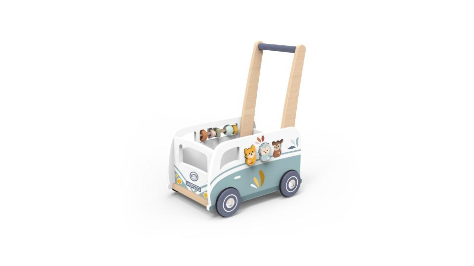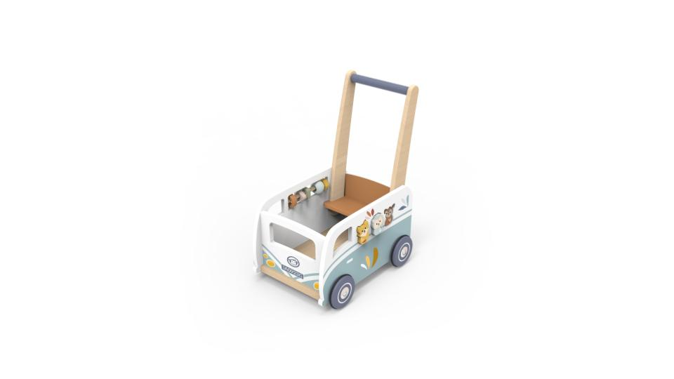הליכון מעץ צבעוני עם מגוון פעילויות בגב הרכב-