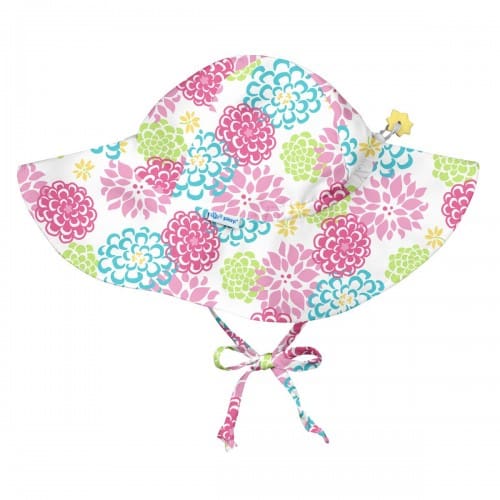 כובע רחב שוליים- פרחים בלבן לתינוקות ולילדות המעוצב להגנה מרבית מפני השמש.