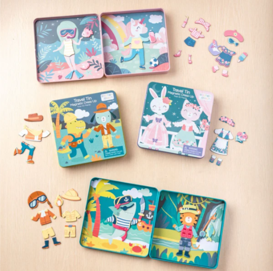 ערכת מגנטים בקופסת פח – מושלם למשחק בדרכים ובבית.